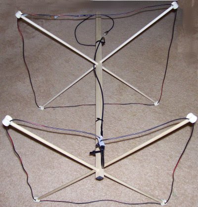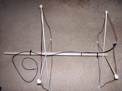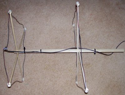 I was soo happy with the loop antenna I decided to make a yagi out of it. With a helping hand from a friend (thanks jim) I got it together. Basically you keep the loop just like the other project. That being the driven element is 20.6 on each side and fed with 13.25" of 75 Ohm coax, but the 75 Ohm I was using had a velocity factor of .66 so your length may vary depending on the velocity factor. To be sure use my loop calculator on the software page. Tune the loop by minute adjustments in length. Once swr is down (I got mine down to 1-1) move onto the reflector.